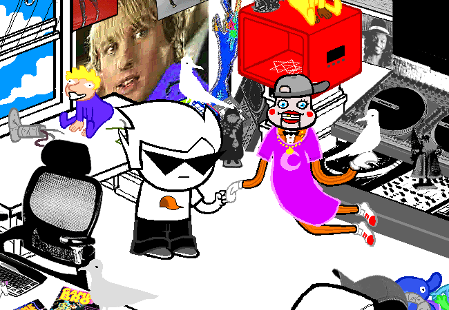 Your name is Dirk.Holy SHIT do you love PUPPETS.You possess the extreme dexterity to operate your FALSE FRIENDS UNSEEN, that is, when they are not pre-ambulatory through your LOVINGLY IMBUED MECHANIZATION. You dig writing COGNITIVE ALGORITHMS FOR SAID APOCRYPHAL MEN, and you think maybe that's FUCKIN' DOPE. Guess what else is dope? Everything ELSE YOU DO. You're a sickwicked autodidact on ANCIENT CIVILIZATIONS, a selfmade MASTER OF MYTHOLOGUE, and a PRETERNATURAL POPCULTURE ACADEME.If you weren't so DAMN ALOOF and actually let people GET A LOAD, you might get described all kindsa ways. Maybe tagged as a RENAISSANCE NINJA, PHILOSOPHER PRINCE, and FLASHSTEP PUPPETEER. Or perhaps a PANTHEONIC IRONICIST, GANGSTA LOGICIAN, LUCID WAKER and DERSITE SPY. Screw descriptors though, as if the shits you give ain't nil. You're cool with dabbling in the FINE SEQUENTIAL ARTS, and your work could be viewed by some as BORDERLINE PORNOGRAPHIC. And to those philistines you'll be heard wondering, what the fuck do you mean BORDERLINE?Against the better judgment of one your age, you BUILD ROBOTS, SET THEM TO KILL MODE, AND SPAR WITH THEM TO DEATH. That is, when you're not SENDIFICATING THEM TO FRIENDS, or DUELING THEM WITH RAP LYRICS. But you try to cool it on the deathmatch stuff when your BRO is looking, which is virtually NEVER. And considering he's had a reputation staked on some order of MARTIAL NOBILITY, this strikes you as a STAGGERING OVERSIGHT IN BROTHERLY VIGILANCE. You don't have the HEART to hold it against him, though.What will you do?