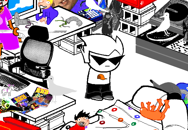 Yo. Evidently, my name is DIRK STRIDER, and I'm one studious fucker. This is gonna be the second home landing page of this Carrd, so the "Start Over" button is gonna link to this page instead of the #examine-room as it previously did. If you really wanna backtrack that fucking far in this experience, I've circumspectly got your back, freak. Just click the "Start Game" link instead. All other buttons will do the same shit they did before. Good luck, reader (o7).